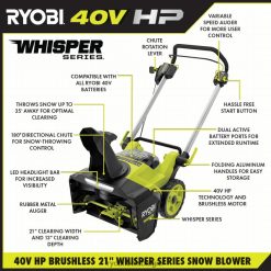 40v pk borstelloze sneeuwblazerset uit de 21 fluisterserie NBBJ6R429 RYOBI buitenshuis