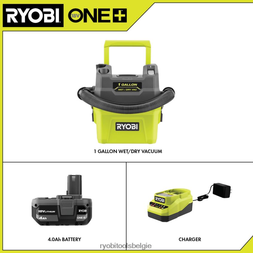18v één+ 1 gallon nat/droog stofzuigerset NBBJ6R585 RYOBI schoonmaak