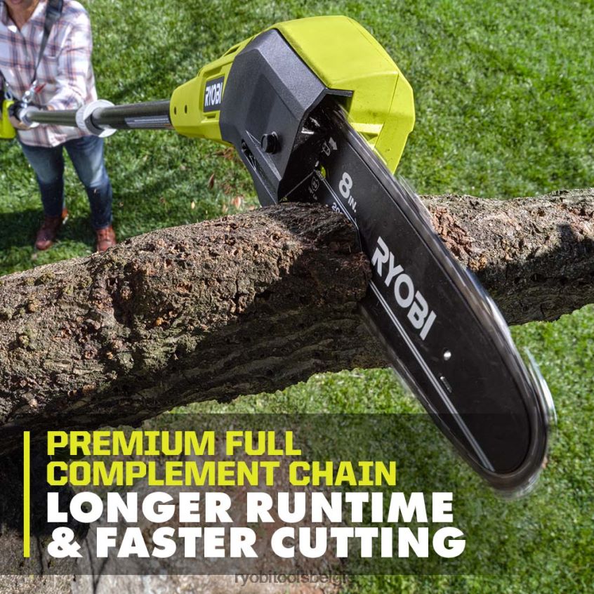 Breid uw Ryobi 18v one+ systeem uit met de 18v one+ 8” stokzaagset. het 8”-zaagblad en de krachtige motor pakken takken tot 6” aan, waardoor het ideaal is voor snoeien en takken afsnijden. Met maximaal 16 zaagsneden per lading en een hoogwaardige volledige ketting levert de stokzaag een langere looptijd en sneller zagen. ervaar uitzonderlijke prestaties met slechts één druk op de trekker, zonder gedoe met gas of snoeren. bereik nauwkeurige zaagsneden met de schuine kop, het 9,5′-verlengstuk en de inline-motor. Voor gebruiksgemak heeft hij een olievrij ontwerp, kettingspanner met gereedschap en ingebouwde gereedschapsopslag. hij is compatibel met de ry8c1 8″ vervangingsketting. Het beste van alles is dat hij deel uitmaakt van het ryobi one+ systeem waarbij elke 18v one+ batterij werkt met elk 18v one+ product. deze 18v one+ 8in stokzaagwordt gedekt door de 3-jarige fabrieksgarantie van de ryobi en is inclusief 18v 1,5ah batterij, 18v oplader, handgreepstok, tussenpaal, combinatiesleutel, schede, schouderharnas en gebruikershandleidingen.