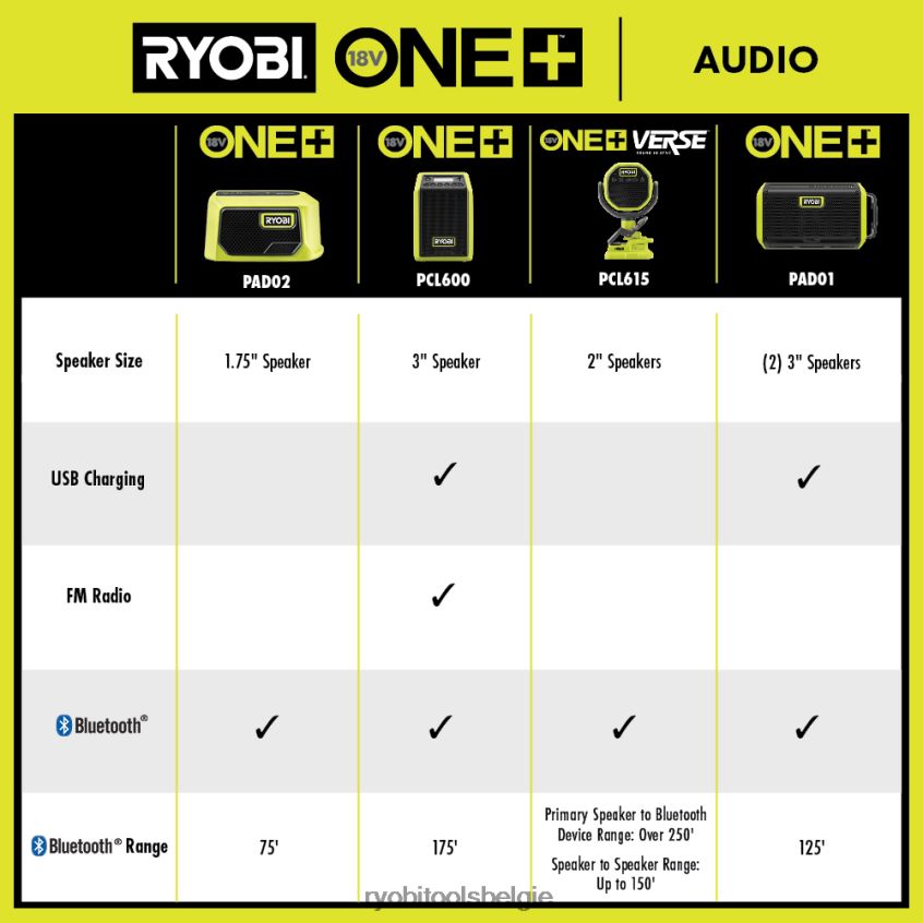 Breid uw ryobi 18v one+ systeem uit met de ryobi 18v one+ compacte bluetooth-radio. ryobi blijft een geavanceerde audio-ervaring leveren, zowel op de werkplek als daarbuiten, met een vier keer grotere geluidshelderheid via een krachtige luidspreker van 15 W. luister naar wat je wilt waar je wilt met zowel Bluetooth- als FM-radiomodi. Met een Bluetooth-verbindingsbereik van ruim 175 meter en meer dan 32 uur ononderbroken looptijd gaat de heldere verbinding van deze luidspreker de hele dag mee op elke werkplek, werkplaats of buitenactiviteit. laad elektronische apparaten twee keer zo snel op vergeleken met het vorige model met een 2.1a usb-poort. Deze ryobi 18v one+ compacte bluetooth-luidspreker wordt gedekt door de ryobi 3-jarige fabrieksgarantie en bevat (1) pcl600 18v one+ compacte bluetooth-luidspreker en gebruikershandleiding. batterij en oplader worden apart verkocht.