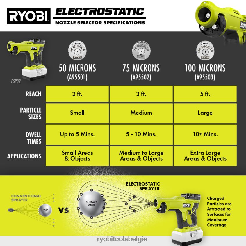 - pas desinfectiemiddelen, reinigingsmiddelen en deodorantia toe met de kracht van elektrostatische technologie