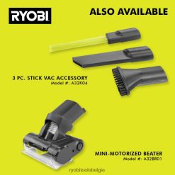 Breid uw ryobi 18v one+ systeem uit met de 18v one+ aangedreven borstelhandstofzuiger. deze handstofzuiger levert krachtige prestaties en snoerloos gemak. De mini-gemotoriseerde klopper is een aangedreven borstelaccessoire dat vuil in beweging brengt, waardoor u erop kunt vertrouwen dat u een grondige reiniging krijgt. Met dit accessoire kunt u eenvoudig uw trappen, bekleding, autostoelen en meer reinigen. de draaibare kop houdt nauw contact met oppervlakken, waardoor u onder verschillende hoeken kunt reinigen. Voor eenvoudige reiniging en onderhoud verwijdert u de rolbeugel met een muntstuk of een platte schroevendraaier. gebruik de schaargroef van de klopper voor probleemloze ontharing. Deze handstofzuiger is voorzien van led-verlichting voor beter zicht tijdens het schoonmaken. Het meegeleverde spleetmondstuk is ideaal voor het reinigen van moeilijk bereikbare plekken zoals onder de autostoelen en tussen meubelkussens. Het stofborstelaccessoire is zacht voor het reinigen van ventilatieopeningen, vensterbanken en kwetsbare oppervlakken. het filter is gemaakt met hepa-media en moet elke 3-6 maanden worden vervangen om maximale prestaties te behouden. vervangingsstandaard- en hepa-filters kunnen online worden gevonden door te zoeken op modelnummer a32hf00 en a32f05. Deze 18v aangedreven handstofzuiger met borstel wordt gedekt door de 3-jarige fabrieksgarantie van Ryobi en bevat een 18v 2ah lithium-ionbatterij, oplader, gemotoriseerde mini-klopper, spleetmondstuk, stofborstel, hepa-filter en gebruikershandleiding.