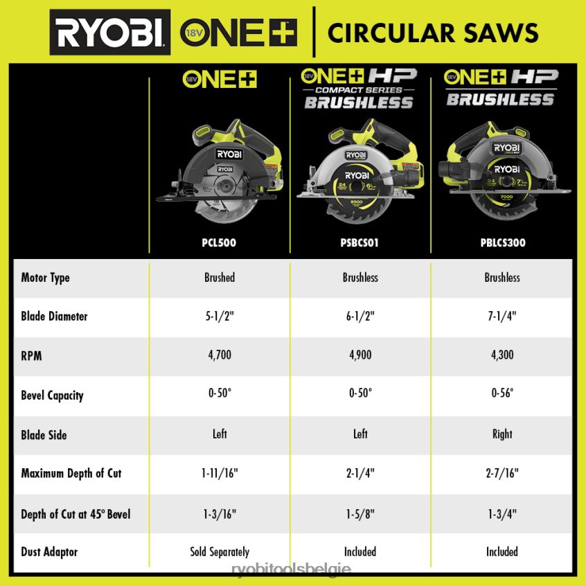 18v one+ hp borstelloze 7-1/4 cirkelzaag NBBJ6R70 RYOBI elektrisch gereedschap