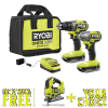 - omvat: (1) 18v one+ hp borstelloze 1/2” boor/schroevendraaier, (1) 18v one+ hp borstelloze 1/4” slagschroevendraaier, (2) 18v one+ 2ah lithiumbatterijen met hoge prestaties, oplader en gereedschapstas