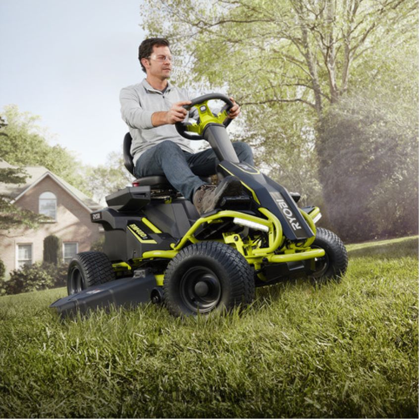 38 100 ah elektrische zitmaaier NBBJ6R227 RYOBI buitenshuis