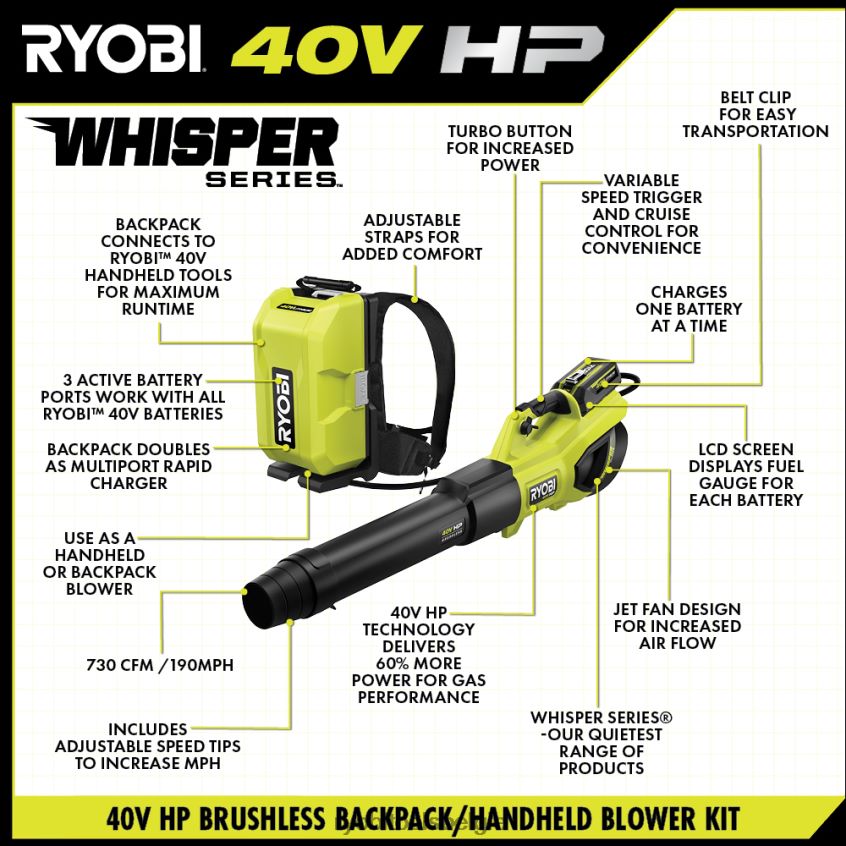40V HP borstelloze fluisterserie rugzak/handblazer NBBJ6R307 RYOBI buitenshuis
