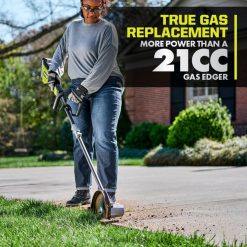 Betreed het ryobi 40v-systeem met de 40v hp borstelloze edger-kit. De 40V pk-technologie levert de kracht van gas, waardoor deze kantensnijder een echte benzinevervanger is. borstelloze motor, geavanceerde elektronica en hoogwaardige lithiumtechnologie is deze kantensnijder ontworpen voor bedieningsgemak en zuivere sneden rond uw opritten, trottoirs en bloembedden. Pas de diepte van uw snede aan met de diepteverstelling op één punt, die varieert van 0,5 inch tot 2,25 inch. Voor nauwkeurig en gemakkelijk randen maakt u gebruik van de mesindicator en het verstelbare 5” achterwiel. De trekker met variabele snelheid en de schakelaar met twee snelheden geven u meer controle bij het klaren van de klus en lopen comfortabel achter uw kantensnijder terwijl u de voorste handgreep gebruikt. Wanneer het tijd is om het lemmet te wisselen, doe je dat snel met de spindelvergrendeling en oN-board mes- en moersleutelopslag. Deze kit bevat een 40V-snellader, waarmee de meegeleverde batterij in minder dan 60 minuten kan worden opgeladen. Het beste van alles is dat het deel uitmaakt van het Ryobi 40V-systeem: elke 40V-batterij werkt met elk 40V-product. Deze 40V HP borstelloze kantensnijderset wordt gedekt door de 5 jaar fabrieksgarantie op gereedschap en 3 jaar batterijgarantie. Het bevat een ry40708 40v HP borstelloze kantensnijder, op40404 40v 4ah lithiumbatterij, op408 40v snellader, bladsleutel en gebruikershandleidingen.