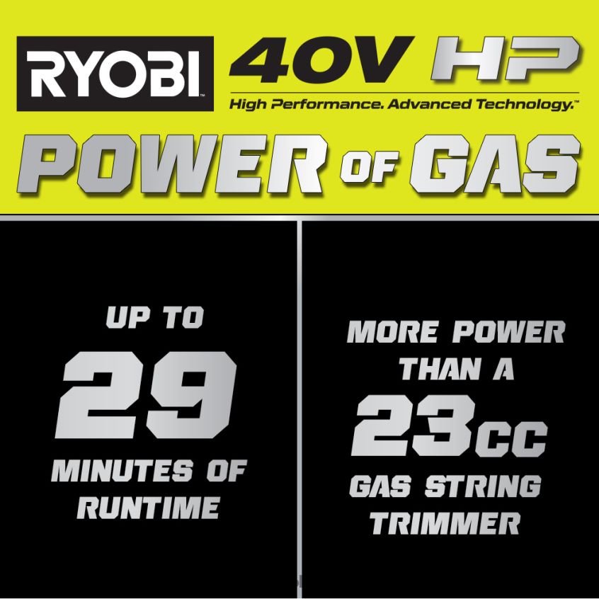 - 40v pk-technologie levert meer vermogen dan een 23cc-gastrimmer