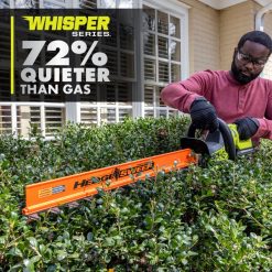 Verbeter uw 40V-systeem met de 40V pk 26” heggenschaarset. De technologie van 40 V pk levert meer vermogen dan een 23 cc gasheggenschaar, zonder gedoe met gas of snoeren. met een batterij van 40 V en 2 Ah bereikt u een looptijd van maximaal 29 minuten. De 40 V pk-technologie combineert een geavanceerde elektronica met een borstelloze motor en krachtige lithiumtechnologie met 26”-messen en een indrukwekkend snijvermogen van 2,5 cm om met gemak dikke heggen aan te pakken. Anti-jam-technologie voorkomt dat de messen vast komen te zitten aan takken, terwijl de dubbele werking De messen werken door heggen met minder trillingen en minder vermoeidheid. Deze fluisterserie trimmer is ontworpen om 72% stiller te zijn dan benzine, en zelfs stiller dan andere snoerloze heggenscharen. Een magnesium versnellingsbak verhoogt de duurzaamheid en maakt deheggenschaar lichter van gewicht. Dankzij de draaibare handgreep kunt u op comfortabele wijze heggen en struiken onder alle hoeken snoeien, terwijl u met de heggenschaar het maaisel gemakkelijk kunt verwijderen terwijl u snoeit. Met de schakelaar met 2 snelheden kunt u kiezen tussen twee snijsnelheden om het vermogen te maximaliseren of de looptijd te optimaliseren. Het beste van alles is dat het deel uitmaakt van het Ryobi 40V-systeem, waarbij elke 40V-batterij met elk 40V-product werkt. Deze heggenschaar van 40 V wordt gedekt door de ryobi-fabrieksgarantie van 5 jaar en bevat de ry40606 40 V-heggenschaar, een heggenschaar om puin te verwijderen, een schede en een gebruikershandleiding. batterij en oplader worden apart verkocht.