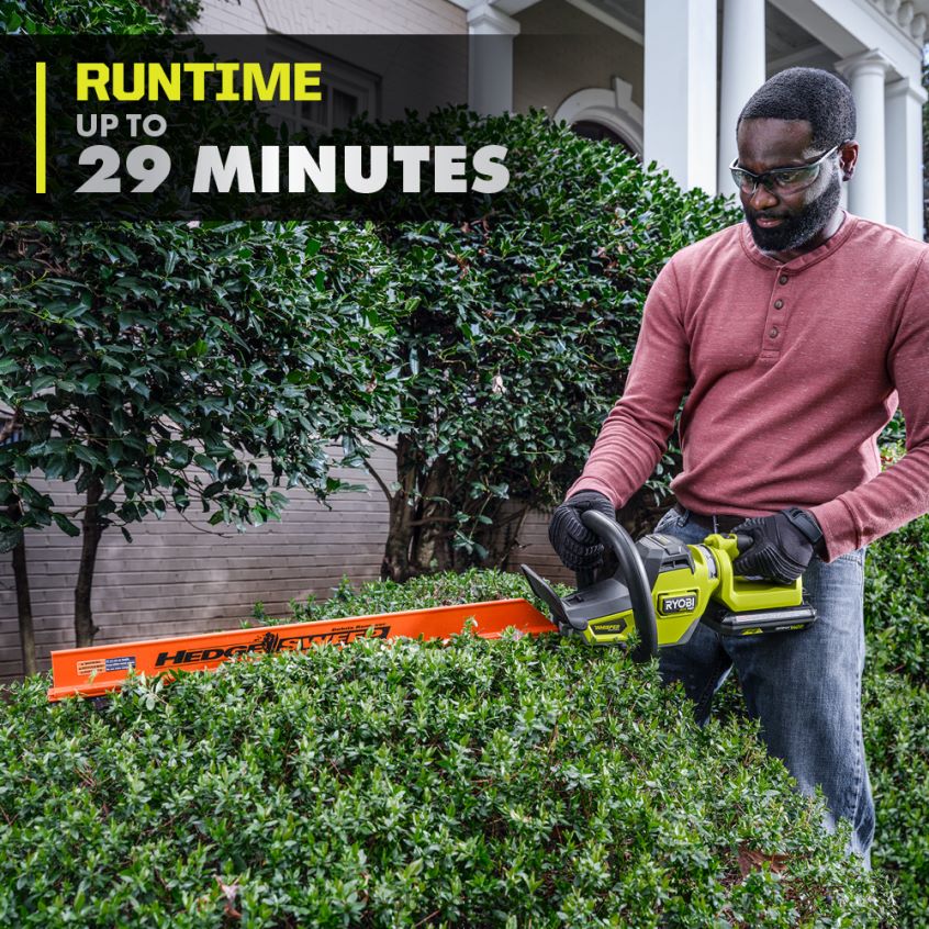 Verbeter uw 40V-systeem met de 40V pk 26” heggenschaarset. De technologie van 40 V pk levert meer vermogen dan een 23 cc gasheggenschaar, zonder gedoe met gas of snoeren. met behulp van de meegeleverde 40v 2ah-batterij bereikt u een looptijd van maximaal 29 minuten. 40V-technologie combineert een borstelloze motor, geavanceerde elektronica en krachtige lithiumtechnologie met 26”-messen en een indrukwekkend snijvermogen van 2,5 cm om met gemak dikke heggen aan te pakken. Anti-jam-technologie voorkomt dat de messen vast komen te zitten aan takken, terwijl de dubbelwerkende messen krachtig door heggen met minder trillingen en minder vermoeidheid. Deze fluisterserie trimmer is ontworpen om 72% stiller te zijn dan benzine, en zelfs stiller dan andere snoerloze heggenscharen. een magnesium versnellingsbak verhoogt de levensduuren maakt de heggenschaar lichter van gewicht. Dankzij de draaibare handgreep kunt u op comfortabele wijze heggen en struiken onder alle hoeken snoeien, terwijl u met de heggenschaar het maaisel gemakkelijk kunt verwijderen terwijl u snoeit. Met de schakelaar met 2 snelheden kunt u kiezen tussen twee snijsnelheden om het vermogen te maximaliseren of de looptijd te optimaliseren. Het beste van alles is dat het deel uitmaakt van het Ryobi 40V-systeem, waarbij elke 40V-batterij met elk 40V-product werkt. Deze heggenschaar van 40 V wordt gedekt door de ryobi 5-jarige fabrieksgarantie en de meegeleverde batterij wordt gedekt door de ryobi 3-jarige batterijgarantie. Deze set bevat de ry40606 40v heggenschaar, op40204 40v 2ah lithiumbatterij, op406 40v snellader, heggenschaar-afvalverwijderaar, schede en gebruikershandleidingen.