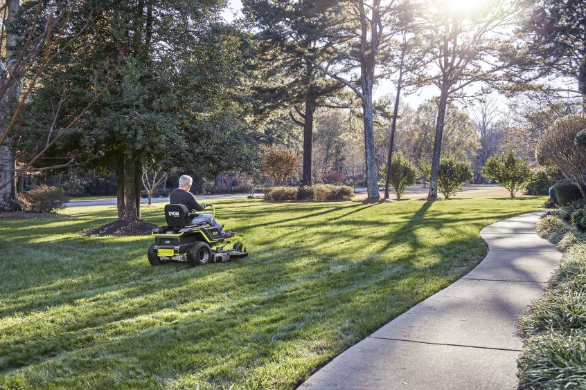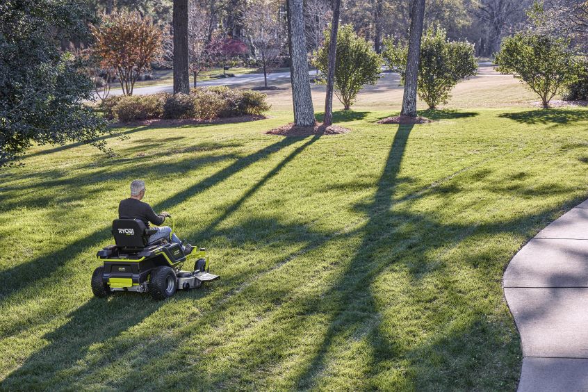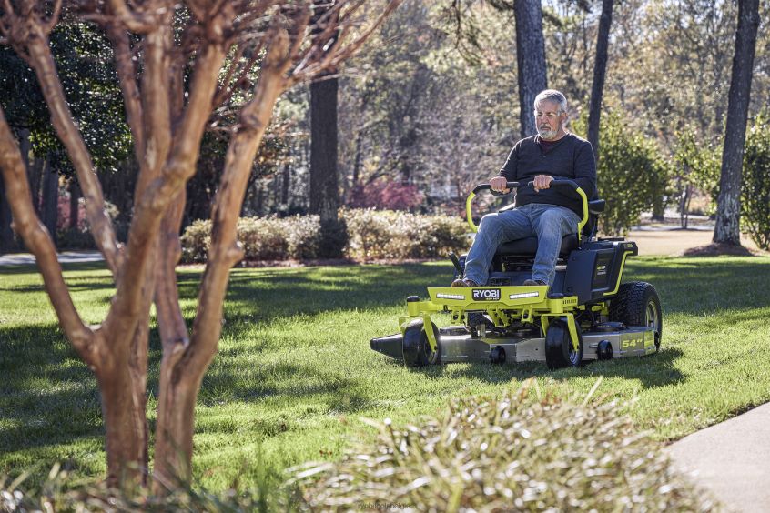 54 115 ah zero-turn elektrische zitgrasmaaier NBBJ6R224 RYOBI buitenshuis