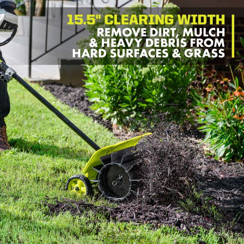 - verwijdert vuil, mulch en zwaar afval van harde oppervlakken en gras