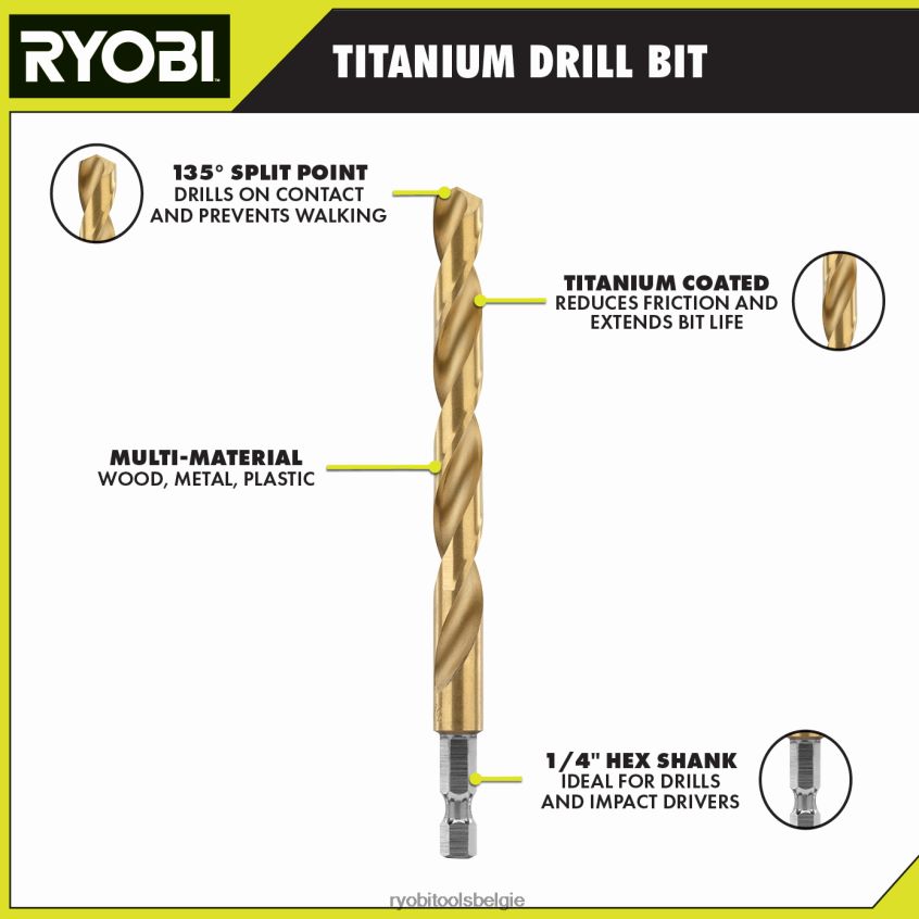 ryobi introduceert de titanium boorset (22-delig). De Ryobi 22-delige boorset met titaniumcoating is een geweldige aanvulling op elke gereedschapsset. de bits variëren in grootte van 1/16 inch tot 3/8 inch en zijn allemaal voorzien van een 135 graden gespleten puntpunt dat lopen verhindert. Alle bits zijn voorzien van een 1/4 inch zeskantschacht voor eenvoudig wisselen van bits en kunnen worden gebruikt voor het boren in hout, metaal en kunststof. de set bevat 22 bits met titaniumcoating van 1/16 inch tot 3/8 inch. Ga voor meer informatie over Ryobi naar ryobitools.com.