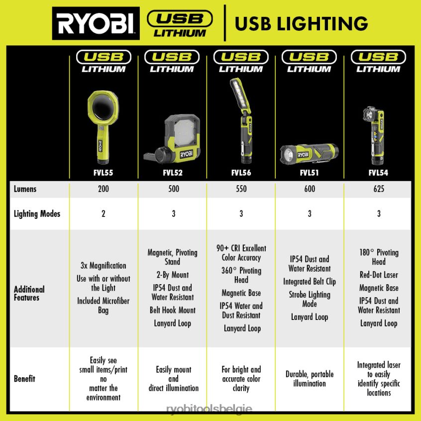 ryobi introduceert de usb lithium led-inspectielampset. Met maximaal 550 lumen, 90+ lichtopbrengst met hoge kleurweergave-index en 3 lichtmodi, biedt deze zaklamp heldere, heldere en nauwkeurige kleurhelderheid in een duurzaam compact ontwerp. dit hoge kleurweergavelicht biedt een looptijd tot 32 uur en is de perfecte oplossing voor toepassingen waarbij het zien van nauwkeurige kleuren cruciaal is. Met een IP54-classificatie voor water- en stofbestendigheid is deze lamp gebouwd om zelfs de zwaarste omstandigheden te weerstaan. De usb lithium compacte led-inspectielampset is een onderdeel van het usb lithiumsysteem dat compacte, draagbare, oplaadbare oplossingen biedt voor draadloze stroom en productiviteit. Deze USB-lithium led-inspectielampset wordt gedekt door de ryobi-fabrieksgarantie van 2 jaard bevat (1) fvl56 led-inspectielampje, (1) fvb01 usb lithium 2ah-batterij, usb-kabel en gebruikershandleidingen.