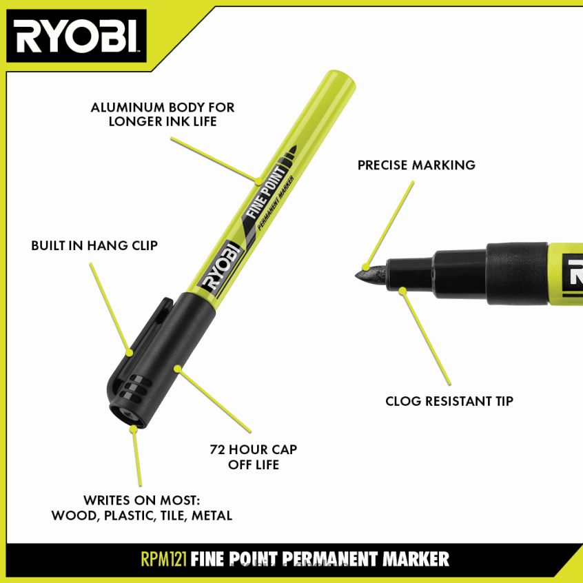 zwarte permanente werkplaatsmarker met fijne punt NBBJ6R667 RYOBI handgereedschap en e-tools