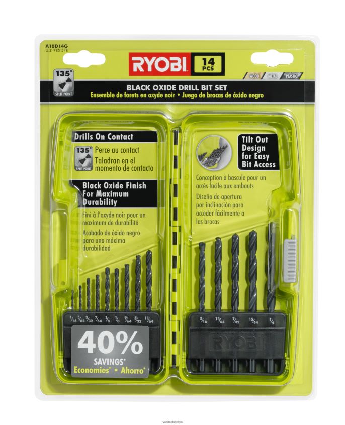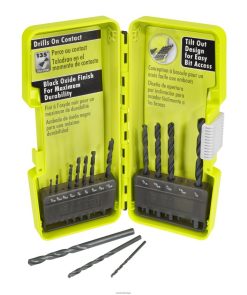 de Ryobi 14-delige zwartoxideborenset bevat bits van 1/16 inch tot 1/4 inch. Deze bits zijn gemaakt van snelstaal en een zwarte oxideafwerking voor hoge duurzaamheid en corrosiepreventie. bithouders in de koffer kantelen voor gemakkelijke toegang. identificeer deze kit snel met de gemakkelijk leesbare beschrijving op de zijkant van de behuizing. bespaar tijd en frustratie bij het doorzoeken van al uw losse onderdelen wanneer u de koffer in de ryobi dockit opslagsysteemlade plaatst (apart verkrijgbaar).