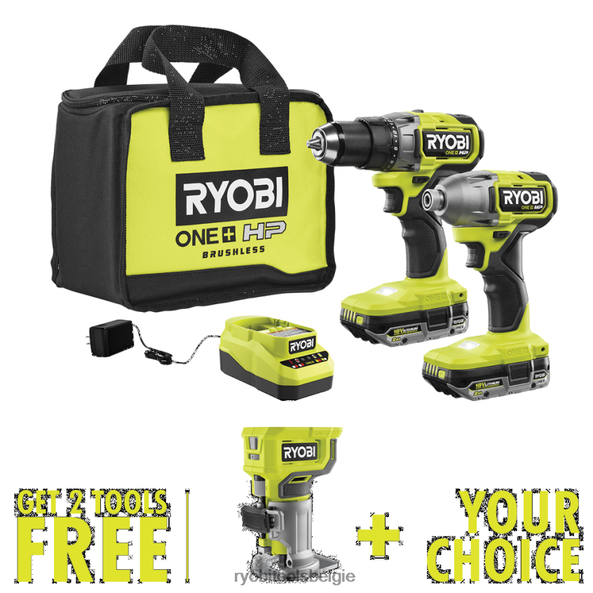 18v one+ hp borstelloze combokit met 2 gereedschappen, gratis 18v one+ compacte router en gratis selectietool naar keuze NBBJ6R11 RYOBI elektrisch gereedschap
