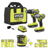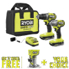 - omvat: (1) 18v one+ hp borstelloze 1/2” boor/schroevendraaier, (1) 18v one+ hp borstelloze 1/4” slagschroevendraaier, (2) 18v one+ 2ah lithiumbatterijen met hoge prestaties, oplader en gereedschapstas