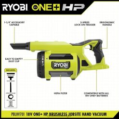 Verbeter uw Ryobi 18v one+ systeem met de 18v one+ hp borstelloze handstofzuigerset voor op de bouwplaats. one+ hp-technologie levert meer vermogen, looptijd, duurzaamheid en snelheid door gebruik te maken van borstelloze motoren, geavanceerde elektronica en hoogwaardige lithiumtechnologie. Deze handstofzuiger levert 3x meer zuigkracht en biedt 3-in-1-mogelijkheden voor handstofzuigers, steelstofzuigers en stationair reinigen met de meegeleverde accessoires. Deze handstofzuiger is veelzijdig voor het reinigen van vloer tot plafond en het opvangen van gipsplaatstof, houtkrullen en vuil op de bouwplaats. Het verlengstuk en het vloermondstuk zijn ideaal voor het verwijderen van vuil in een steelstofzuigerfunctie. Voor het reinigen in krappe ruimtes kan de kierenzuigmond eenvoudig aan de handstofzuiger worden bevestigd. de 5′ x 1-1/4” slang biedt extra flexibiliteit in stationaire modus. Hepa-filtratie vangt tot 99,9% van het stof en allergenen op en vervangingsfilters zijn online te vinden (a32hf01). Deze 18v one+ hp borstelloze handstofzuigerset voor op de bouwplaats wordt gedekt door de ryobi 3-jarige fabrieksgarantie en bevat een 18v 4ah lithiumbatterij met hoge prestaties, oplader, 5′ x 1-1/4” slang, spleetmondstuk, vloermondstuk, verlengstuk wand, hepa-filter en gebruikershandleidingen.