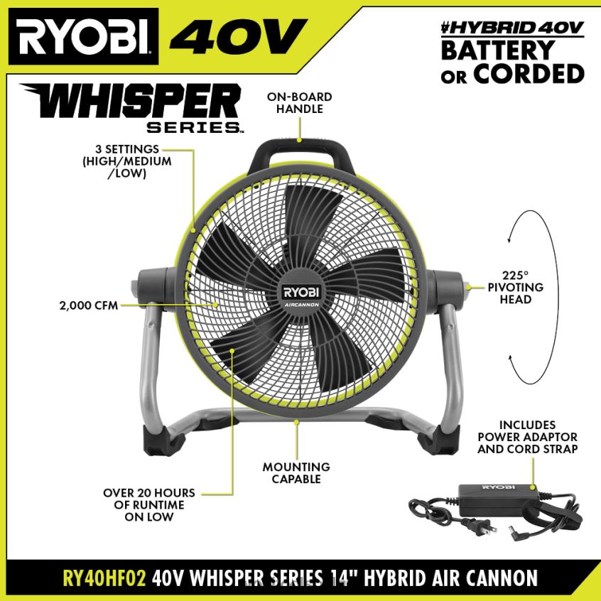 40v 14 hybride luchtkanon NBBJ6R492 RYOBI verlichting levensstijl en recreatie