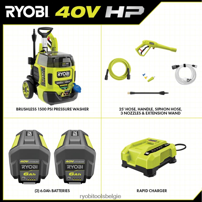 verbeter uw 40v-systeem met de ryobi 40v hp hogedrukreiniger. Geavanceerde 40 V pk-technologie maakt gebruik van een borstelloze motor, geavanceerde elektronica en lithiumbatterij die tot 1.500 psi en 1,2 gpm levert voor krachtige, draagbare reiniging. geen gas, geen onderhoud en geen gedoe. voor maximale looptijd gebruikt u deze hogedrukreiniger op de standaardinstelling voor prestaties van 1000 psi. wanneer ultieme kracht nodig is, ontketen dan 1.500 psi in de boostmodus. de borstelloze motor en lithiumtechnologie zorgen voor een looptijd van maximaal 25 minuten met de (2) meegeleverde 40v 6ah-batterijen. Deze hogedrukreiniger uit de Whisper-serie is ontworpen om 81% stiller te zijn dan gashogedrukreinigers, zodat u op elk moment van de dag kunt schoonmaken zonder anderen te storen. verbeter uw hogedrukreiniger met ry31012vnm 12″ oppervlaktereiniger fof snelle, streeploze reiniging, ry31211 waterbezem voor effectieve verwijdering van vuil en vuil, en de ry31f04 schuimblaster voor gecontroleerde dosering van schuimwasmiddel. Het beste van alles is dat het deel uitmaakt van het Ryobi 40V-systeem, waarbij elke 40V-batterij met elk 40V-product werkt. Deze 40v pk hogedrukreiniger wordt gedekt door de ryobi 5-jarige fabrieksgarantie en de meegeleverde batterijen worden gedekt door de 3-jarige batterijgarantie van de fabrikant. Deze hogedrukreiniger bevat de ry40pw15 40v hogedrukreiniger, (2) op40605 40v 6ah lithiumbatterijen, trekkerhandgreep, sproeilans, 25′ niet-ontsierende hogedrukslang, 10′ sifonslang, mondstukken (15 graden, zeep en turbo), zelfaanzuigende adapter en gebruikershandleidingen.