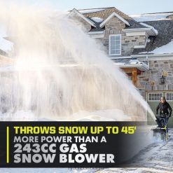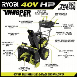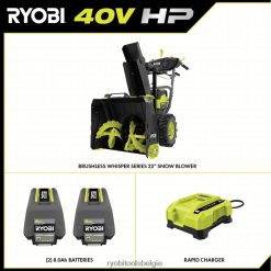 Verbeter uw ryobi 40v-systeem met de ryobi 40v pk borstelloze 22” sneeuwblazerset. De 40v pk-technologie combineert een borstelloze motor, geavanceerde elektronica en hoogwaardige lithiumtechnologie om meer vermogen te leveren dan een 243cc-sneeuwblazer op gas, waardoor dit een echte benzinevervanger is. De krachtige motor gooit sneeuw tot op een afstand van 12,5 meter en heeft een looptijd van maximaal 30 minuten met behulp van de (2) meegeleverde 40 V 8 Ah-batterijen, genoeg om tot 20 parkeerplaatsen sneeuw te ruimen. Deze sneeuwblazer uit de Whisper-serie is ontworpen om 44% stiller te zijn dan benzine en zelfs stiller dan andere draadloze sneeuwblazers, zodat u op elk moment van de dag kunt werken zonder anderen te storen. de ruimingsbreedte van 22 inch en de ruimingsdiepte van 18 inch maken deze sneeuwblazer ideaal voor grote trottoirs en opritten. het beschikt over een variabele snelheidzelfrijdend aandrijfsysteem om de klus snel en moeiteloos te klaren. Voor meer controle en duurzaamheid beschikt de sneeuwblazer ook over een geheel stalen vijzel met variabele snelheid en een 180 graden richtbare uitwerpopening om de richting van de sneeuwworp te bepalen. Het beste van alles is dat het deel uitmaakt van het Ryobi 40V-systeem, waarbij elke 40V-batterij met elk 40V-product werkt. Deze 40v pk borstelloze 22″ sneeuwblazerset wordt gedekt door de ryobi 5-jarige gereedschapsgarantie van de fabrikant, 3 jaar batterijgarantie van de fabrikant, en omvat de ry408150 40v borstelloze 22″ sneeuwblazer, (2) op4080a 40v 8ah-batterijen, 40v snellader , reinigingsgereedschap, montage van de bovenste handgreep, montage van de stortkoker, montage van de stortkoker en gebruikershandleidingen.