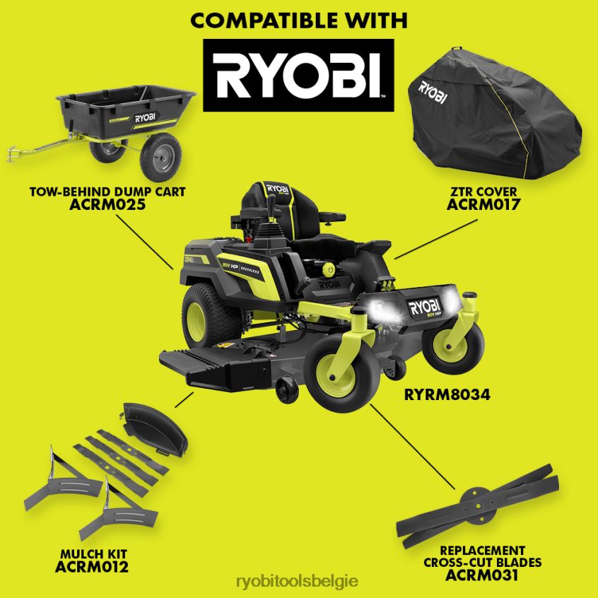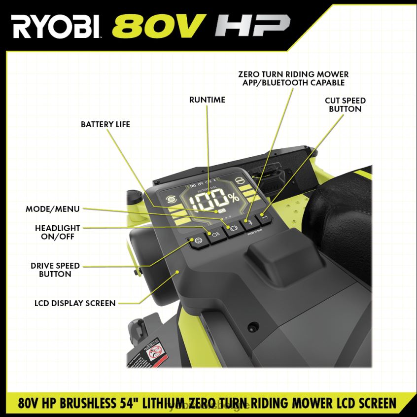 80v pk borstelloze 54 lithium elektrische zero-turn zitmaaier NBBJ6R221 RYOBI buitenshuis