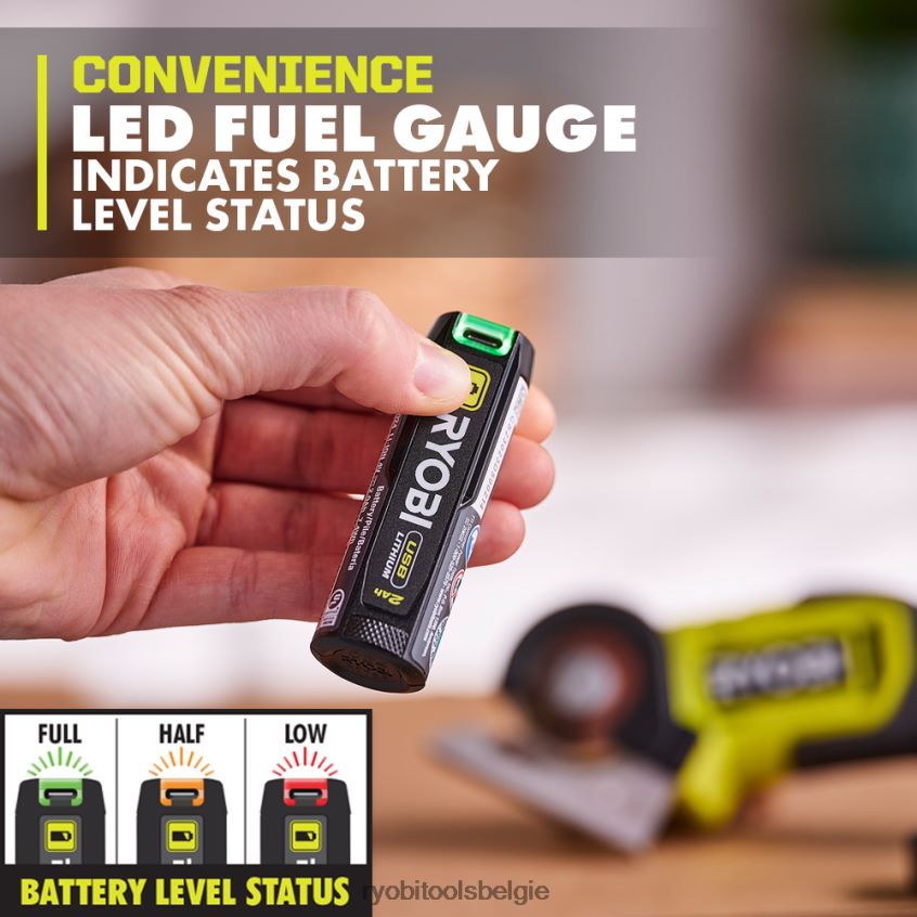 ryobi introduceert de usb lithium 2ah lithium oplaadbare batterij. Deze batterij biedt gemak onderweg en laadt uw kleine draagbare apparaten zoals uw telefoon of smartwatch op. De ingebouwde led-brandstofmeter neemt het giswerk weg door duidelijk de status van het batterijniveau aan te geven. deze batterij is voorzien van een usb-c-oplaadpoort voor eenvoudig opladen met elke usb-c-kabel. Deze batterij is gemakkelijk uitwisselbaar tussen alle USB-lithiumproducten voor draadloze draagbaarheid en minimale uitvaltijd. De usb lithium 2ah lithium oplaadbare batterij wordt gedekt door de ryobi 2-jarige fabrieksgarantie en omvat de fvb02 usb lithium 2ah lithium oplaadbare batterij en de gebruikershandleiding.
